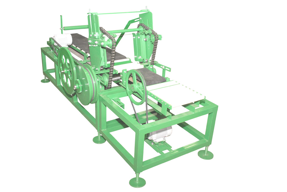 Equipamento provido de um dispositivo de corte por arame no sentido vertical, com a função de bitolar as peças extrusadas (corte de tijolo e bloco) no comprimento desejado.